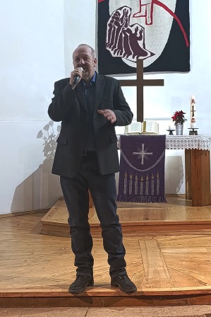 Авторы книги – проф. д-р Глеб Алексушин и пропст Ольга Темирбулатова выступают на презентации.