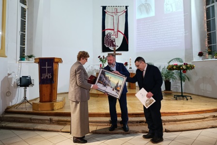 Представители администрации зачитали поздравительный адрес от главы г. о. Самары и вручили пропсту Ольги Темирбулатовой картину с изображением кирхи.