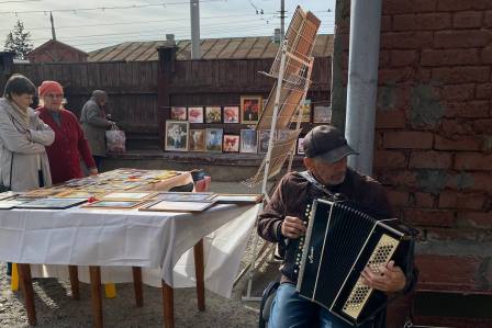 Во дворе дома общины во время фестиваля работала благотворительная ярмарка.