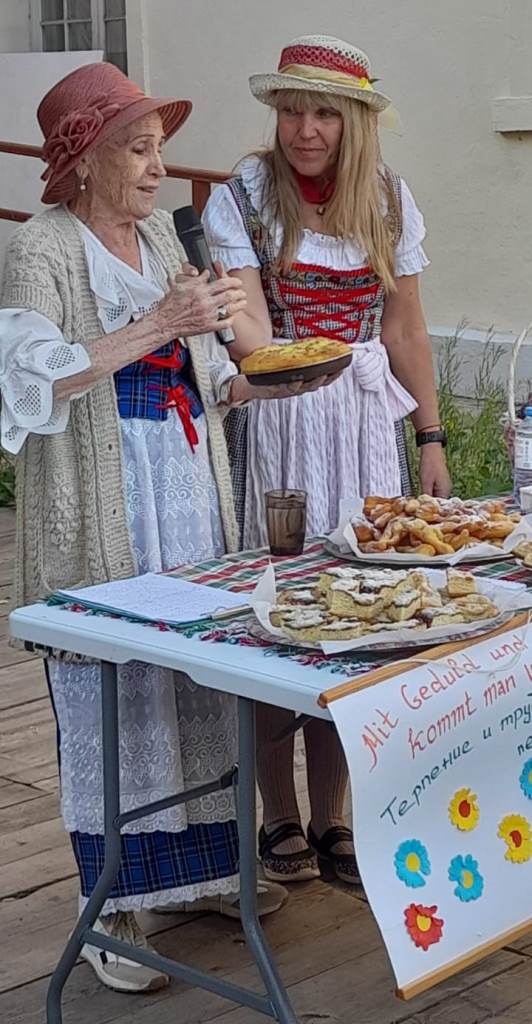 В один из праздничных дней, 27 сентября, прихожане Роман Кнабенау, Алевтина Гельбер, Татьяна Шефер и Светлана Потапова развернули у Дома общинной управы выставку прикладного искусства ручной работы. Это творчество прихожан Ирмы Беккер и Надежды Ниденталь. Большой интерес у гостей праздника вызвала разноплановая литература о жизни российских немцев. В уютном дворике Торгового дома Гольдбаха прихожанка Нелли Третьякова провела гастрономическую презентацию и познакомила гостей фестиваля с рецептами старинной кухни сарептян. Особое внимание было уделено рецептам пирогов с разными начинками, таких как штройзелькухен, крауткухен, эпфелькухен, кребли и плюшки «Пелены Иисуса Христа». Все присутствующие смогли угоститься этими пирогами.