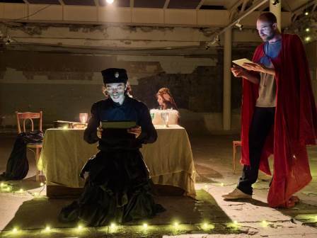 Зрителями спектакля-читки в бывшей чаше бассейна в этот вечер стали сотрудники Канцелярии архиепископа и общины св. Анны и св. Петра, прихожане общины и другие гости. По окончании представления они могли поделиться своими впечатлениями и комментариями. В дальнейшем работа над постановкой продолжится. Это представление, показанное на пасхальной неделе в Петрикирхе, – промежуточный итог работы над спектаклем. На театральной читке, в отличие от обычного спектакля, актеры пока еще не произносят свой текст по памяти, но зачитывают его по сценарию. К слову, этот спектакль-читку театр подготовил в рекордно короткие сроки – всего лишь за восемь репетиций. Архиепископ Владимир Проворов выразил надежду, что со временем уже доработанный спектакль войдет в постоянный репертуар театра. Но уже сегодня постановка этой пьесы театром «Театро ди Капуа» стала большим пасхальным и юбилейным подарком для Церкви! Сообщение Канцелярии архиепископа