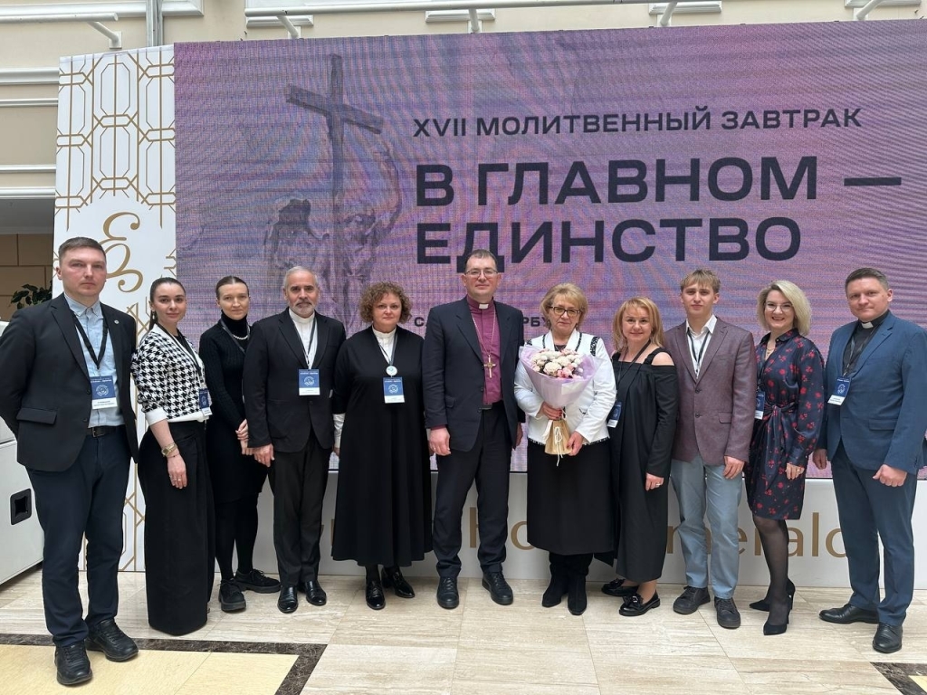 Делегация Союза ЕЛЦ также приняла участие в XVII Молитвенном завтраке. Ее возглавил архиепископ Евангелическо-Лютеранской Церкви России (ЕЛЦР) Владимир Проворов. В своем обращении к участникам завтрака он процитировал Евангелие от Матфея: «Не хлебом одним будет жить человек, но всяким словом, исходящим из уст Божиих» (Мф. 4,4). Именно Слово Божье было и остается главной основой, которая способна удерживать нас в мире и взаимопонимании, рождая единство, – подчеркнул архиепископ. Также в состав делегации вошли координатор диаконической работы Евангелическо-Лютеранской Церкви Европейской части России, пастор Татьяна Шадт (Тольятти), пастор Сергей Кивенко (Бердянск) и пастор Владимир Татарников (Гродно) и представители канцелярии архиепископа ЕЛЦР, петербургской общины св. Анны и св. Петра и книжного служения «Слово».