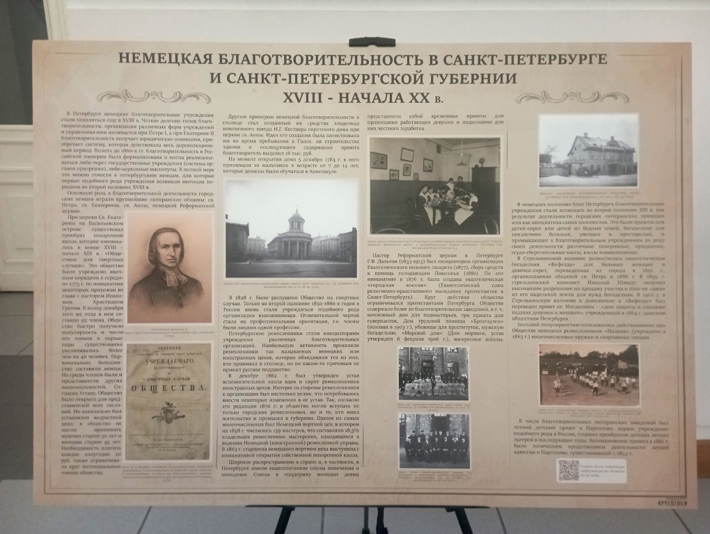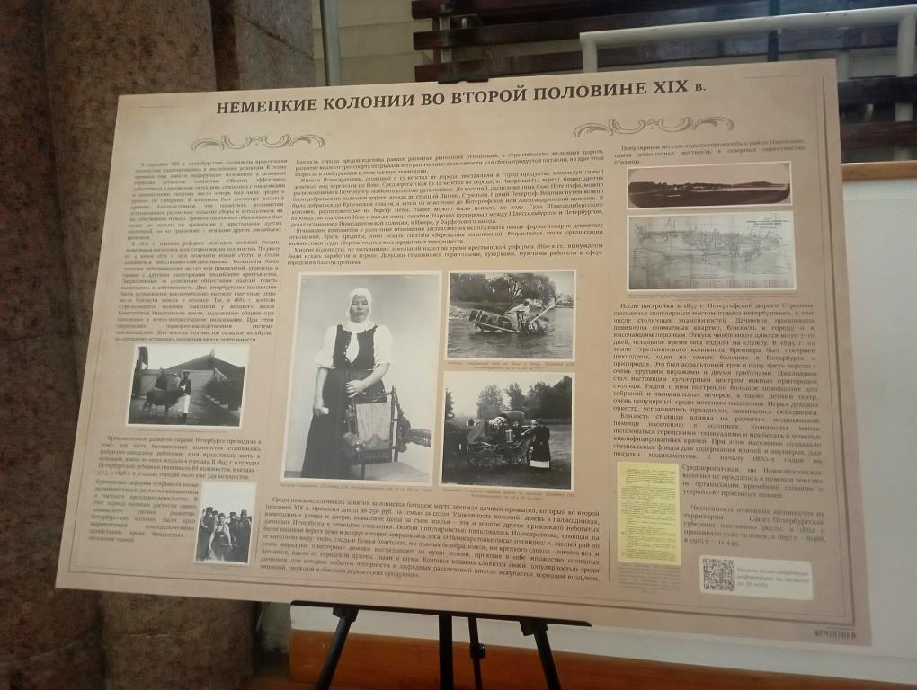 На 15 стендах, которые сейчас размещены в церковном зале, рассказывается история немецкого сообщества Санкт-Петербурга-Петрограда-Ленинграда: со времени основания Санкт-Петербурга до 1941 года.
